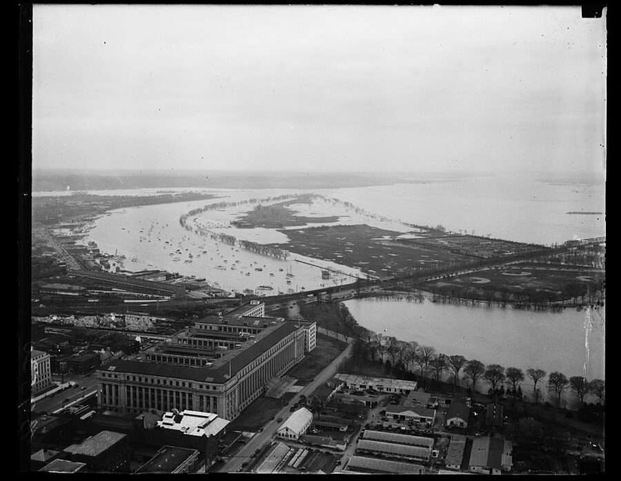 By 1927 Clinton is living in in Southwest Washington, D.C., in an area known as “the Wharf,” named for the DC Municipal Fish Market, the oldest open-air seafood market in the United States (since 1805).[11] This area thrived in the 1920s and in the 1930s it was revitalized. Marvin Gaye and Al Jolson grew up in the neighborhood. We can imagine the air thick with music, bridges being built and boats coming and going with the aroma of fresh seafood. In 1927 he is working at Central Auto Works and Garage as a helper.[12] He worked various odd jobs, including serving as apprentice on an oyster boat in 1928, and continuing to practice as a musician, while (using his own plans) he constructed a 52-foot excursion craft, capable of carrying more than 40 people, along the wharves. Once completed he was able to dig in around it and let the Potomac waters float the boat into the river.