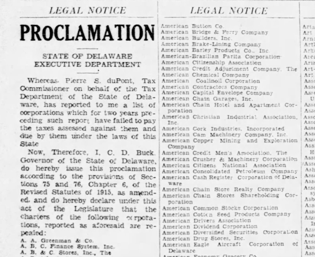 [2] Delaware Public Archives; Delaware Land Records; Roll Number: 314. Newspapers.com – The Orlando Sentinel – 1922-06-30